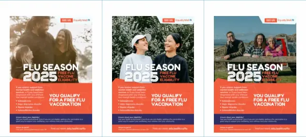 May 2025: Funded flu vaccination for tāngata whai ora | Equally Well posters